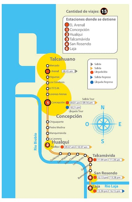 – Salida 08:45 horas Estación Arenal de Talcahuano /09:15 horas desde Estación de Concepción